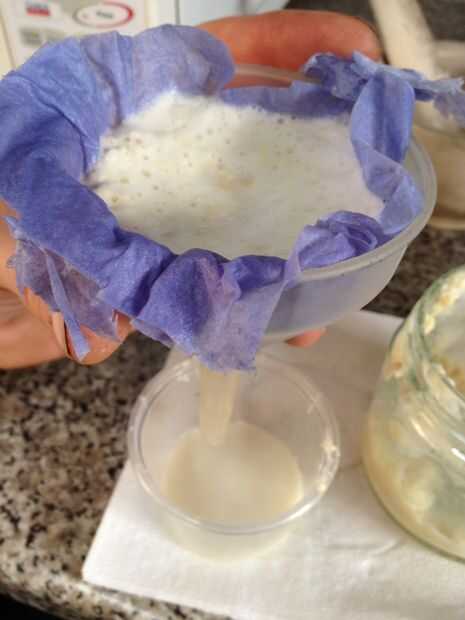 Agregar foto 2) a la izquierda sobre el agua al puré para liberar un líquido lechoso. Si se añade más agua [decir doble] es más fácil al tamiz. Usted puede sin embargo dejar asentarse y cuchara hacia fuera en lugar de tamiz it...
