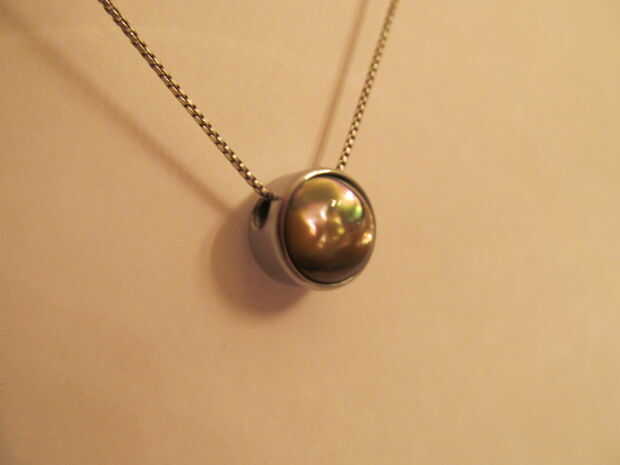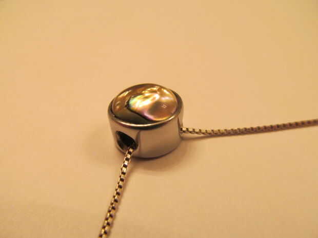 estaba vagando la tienda de artesanía ayer cuando me topé con esta concha de abulón. Fue una apuesta pero yo estaba realmente feliz con lo bien que resultó. Lo que se ve en la foto es realmente la parte trasera de la carcasa con la carcasa exterior m