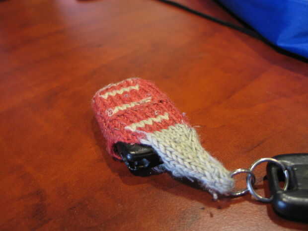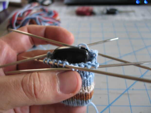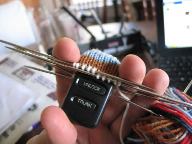 - Continuar hacer punto en la ronda para cubrir la distancia. Tuve la suerte que el mío es básicamente un rectángulo. Si su control remoto tiene forma de una lágrima u otra manera irregular, puede tener hacer disminuciones para asegurarse de que continúa caber bien.