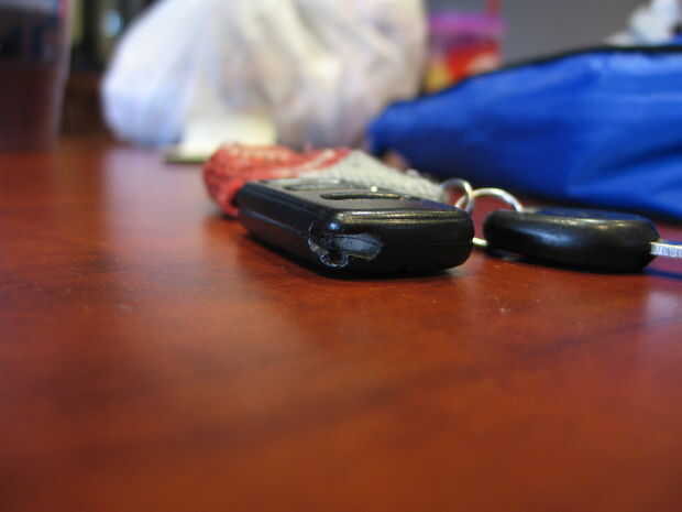 - Usar puntadas de la puntilla para esbozar el diseño de botón. En mi caso, había tres botones, así que simplemente puse dos crestas para dividirlos. Estos se pueden fácilmente sentir cuando llegue en mi bolsillo para el mando a distancia. Diseños más complejos pueden requerir crestas verticales, que se pueden hacer con las puntadas de la puntilla en el mismo lugar en cada ronda.