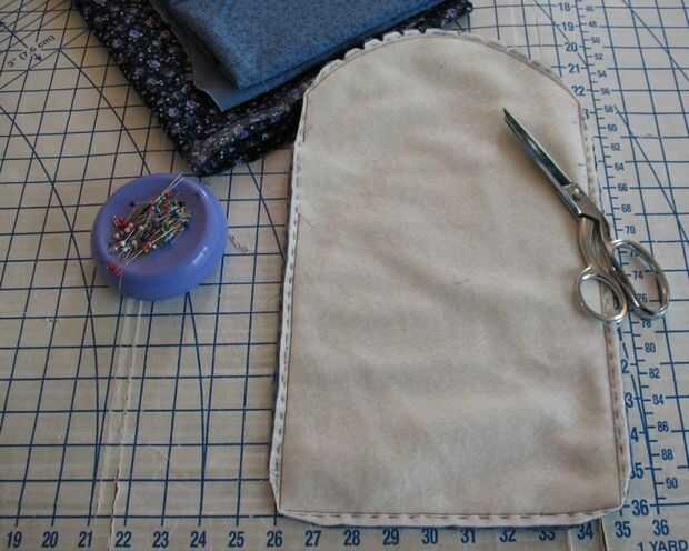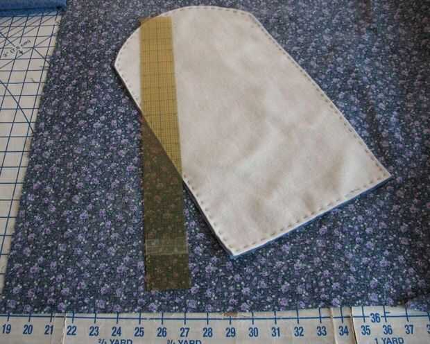 Una capa duplicada de la tela se corta como la guarnición. Con los derechos juntos, cosido los bordes, dejando un par de pulgadas libres a la derecha de la tela. Pero antes de girar, recortado por las esquinas y recorta pequeños triángulos de la aleta curva-Esto elimina a granel desde el interior.