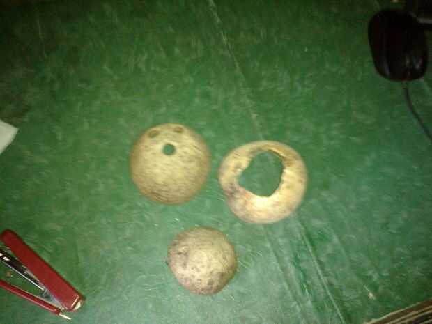AHORA SE TOMAN LAS CÁSCARAS LIBRE DE TANINOS Y CON LA AYUDA DE BROCA HABÍA HECHO AGUJEROS Y UNA ENTRADA DE GRANDES AGUJEROS EN LA PARTE SUPERIOR EN LA CÁSCARA DE GRAN, 3 AGUJEROS EN LA PARTE SUPERIOR DE LA CARCASA Y UN AGUJERO EN EL LADO DE LA MISMA CÁSCARA