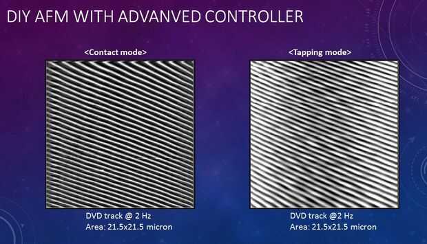 La AFM DIY con regulador avanzado del AFM puede ver claramente las pistas de datos de DVD cuando opera en modo AC (Tapping).