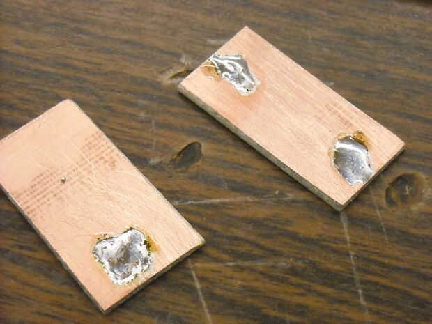 Los niños siempre quieren probar en este momento. Utilice un pedazo de cinta de doble cara o algunos epoxi para unir las partes de fibra de vidrio de la placa de cobre Junta... Asegúrese de que los niños no pegan a los lados de cobre. No te rías, pasa!