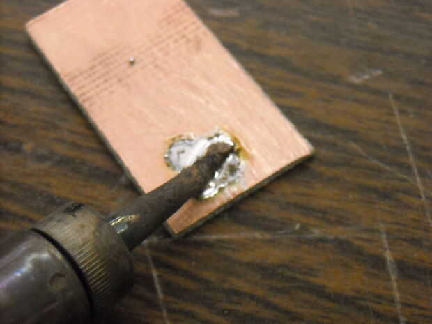 Ahora los niños necesitan hacer las puntas de prueba. Lo que hago es enseñarles a soldar el cable a las almohadillas de cobre calentando las almohadillas de primera y aplicando soldadura. Creo que Pele los cables extremos y preparación uno final de ellos por calentamiento y aplicación de soldadura en el cable. Preparando el cable y la almohadilla de cobre facilita la soldadura los 2 juntos.