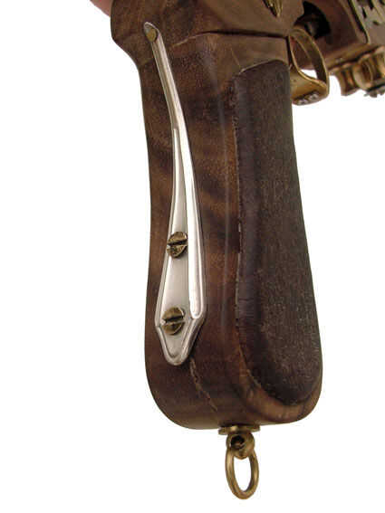 ¿Algo digno de mencionar aquí es el viejo botón de uniforme de latón que he puesto en el cuerpo de la pistola, posiblemente es del uniforme del vestido de bombero, quizás militar? No estoy seguro pero tengo unos 6 de estas por lo que estoy usando como divisa "Del Almirante" de la oficina. Plan para fijar a la funda voy a hacer para esta arma, y también he puesto uno en un cuero viejo bracer/manguito que se complementa esta pistola muy bien, ver la última fotografía de la "mesa del Almirante" para ver el brazal de cuero.