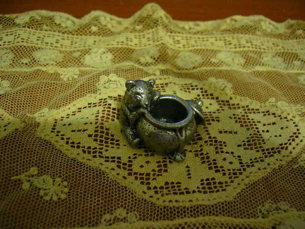 Esta caldera miniatura puede contener una vela de cera de abejas o un cono de incienso. Vino con un conjunto de velas de cera de abejas en una tienda de regalos del Museo. El caldero representa el espíritu y la regeneración.
