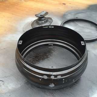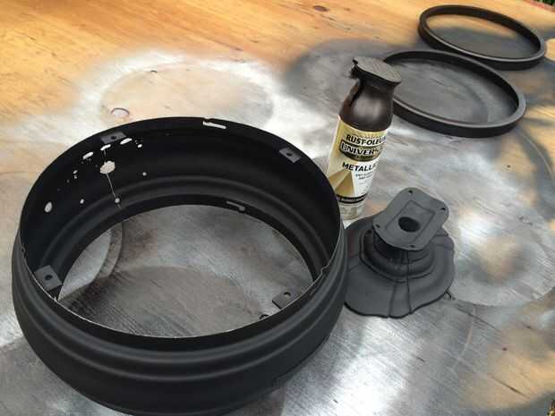 He incluido notas en la mayoría de las fotos para darte una idea más clara sobre cómo estoy haciendo este altavoz bluetooth. Primero apagado tuve que limpiar todo el moho, que era una tarea fácil, mi elección de la aspiradora... cepillo de latón en un soporte de taladro. Después de limpiar bien todo el moho que aerosol pintado con un metal anti oxidación imprimación y luego rematado con aceite frotó el bronce. El aceite frotó el bronce por rustoleum, el poder está representada en la séptima foto aquí. Entonces yo al horno la pintura en un horno a 160 grados centígrados (320 grados farenheit) durante unos 45 minutos, lo hace para un final duro agradable. La parrilla del altavoz fue acabada con pintura de aerosol del cromo.