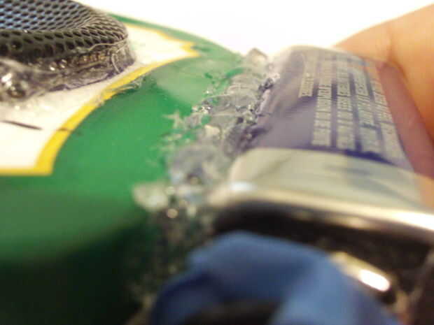 Para pegar los altavoces sólo póngalo alineados con los agujeros y sólo círculo alrededor con la pistola encoladora.
