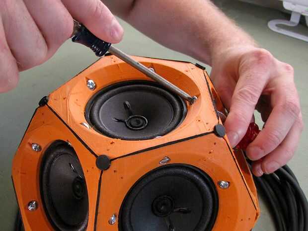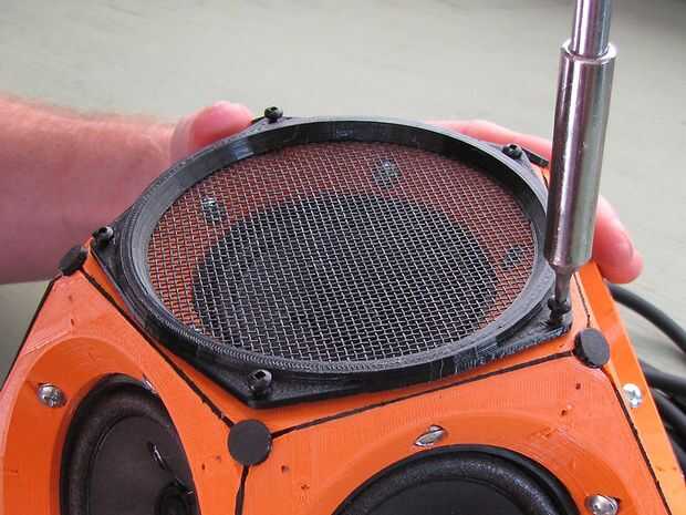 El espacio libre dentro del gabinete se rellena con lana de fibra de vidrio para proporcionar amortiguación acústica y protección contra vibraciones de componentes. He utilizado mechones de fibra de vidrio rasgado a mano de un retal de aislamiento del desván "Rosa". Las fibras de lana de vidrio puede irritar la piel, así que use guantes y una camiseta de manga larga al hacer esto. La lana se embala en una densidad intermedia; no es flojo, pero no es pegó en como pólvora, tampoco. Mayor parte entrará en el grupo de los dos grupos ya has atornillados entre sí, pero no descuiden el tercer clúster y todos los espacios poco abajo entre los altavoces.