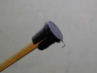Un nudo de alivio de tensión en el cable de otro dos pulgadas detrás, más o menos. Este nudo, que es mucho demasiado grande para pasar por la abertura estrecha donde el cable sale del armario, soportará el peso del altavoz colgante.