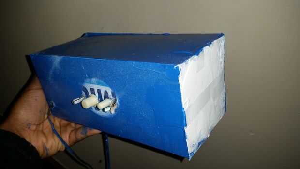 Coloque el altavoz ahora funciona en cualquier recipiente que se adapte a su fantasía. Elegí un caja envase para mina.