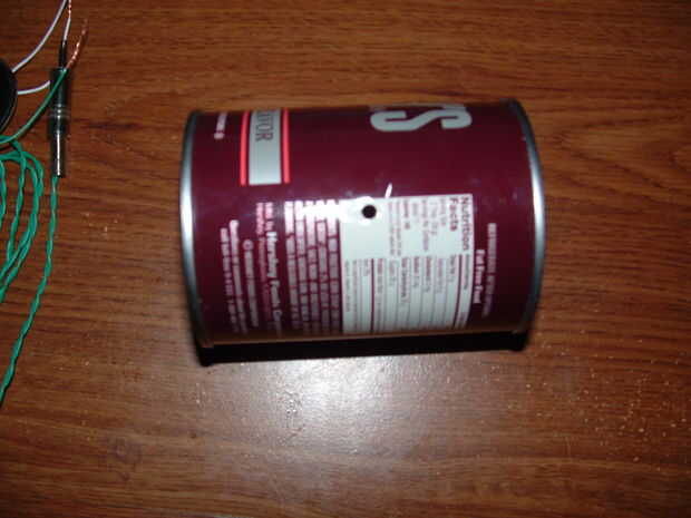 cosas que usted necesitará:-altavoz antiguo-sopa o salsa puede-broca de metal-destornillador-caliente el pegamentoPrimero tienes que tomar todos los tornillos de los altavoces viejos y tomar todas las partes del altavoz. Luego deberá perforar dos agu