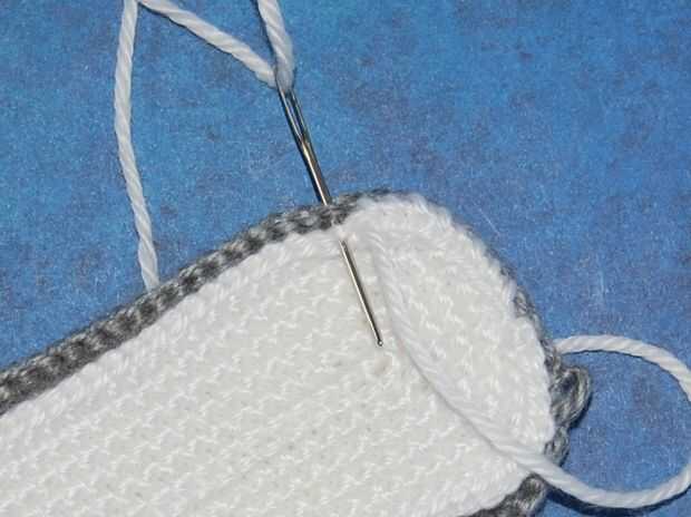Punta: Usé una puntada del azote y trabajado por los lazos detrás solamente de las dos piezas con el fin de mantener la Unión en el nuevo constante con el frente (véase abajo).
