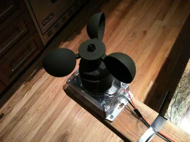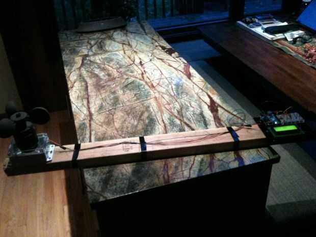 Sí, es un 2 x 4. Os adjunto el anemómetro en un extremo y una depuración Arduio al otro. La pantalla LCD muestra las cuentas de rotor.