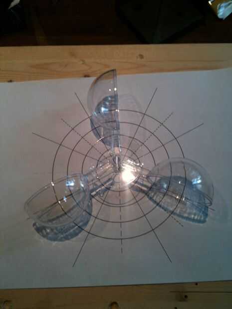 Los ornamentos provenían de la Oriental Trading Company, artículo "48/6300 DYO claro ornamento", $6 más envío de $3. Los ejes de plástico y el disco estructural vinieron de una tienda de grifo plástico, cerca de $4 más partes en.