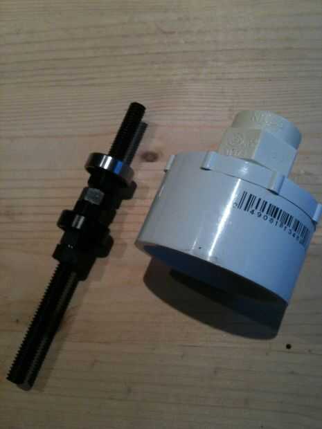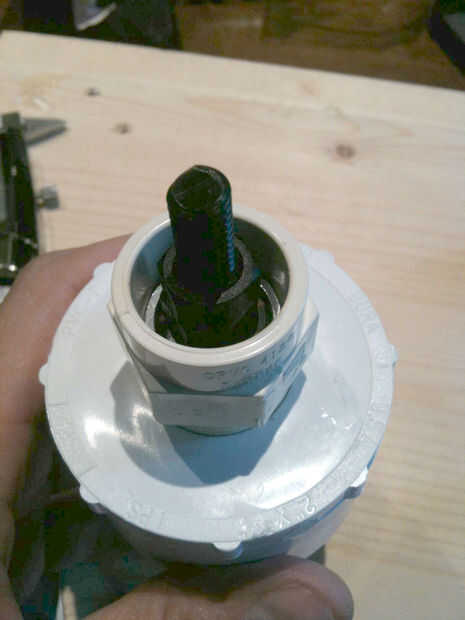Planeé conectar un sensor óptico en la parte inferior del eje, para que montara el acoplamiento de CPVC en una base más grande. Home Depot es un divertido lugar para mezclar y combinar accesorios de PVC/CPVC. Al final pude cosas que 3/4 "rosca de acoplamiento en un PVC 3/4" a 1-1/2" reductor CPVC. Tomó mucho jugando a hacer todo lo que cabe, pero deja suficiente espacio para la electrónica.