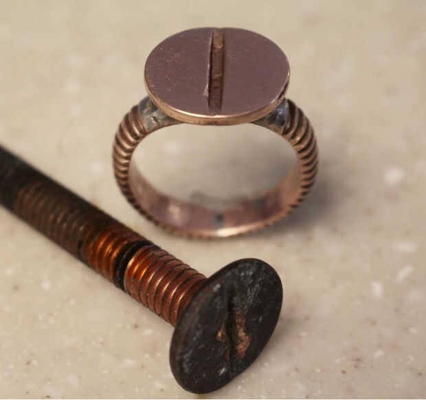 Después de todo era y al cabo, tenía estos dos tornillos de cobre sólido seriamente oxidado 3 pulgadas. Cómo podría dejarlos a ir a la basura. Decidí tomar un tornillo desde el inodoro y lo puso en mi dedo.