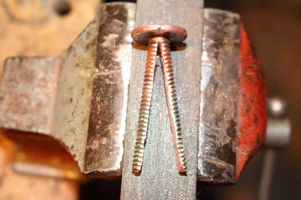 Me Coloque el tornillo en el tornillo de banco y utilizar una herramienta giratoria con un disco de corte para iniciar el corte. Luego usé una sierra para metales para terminar el corte.