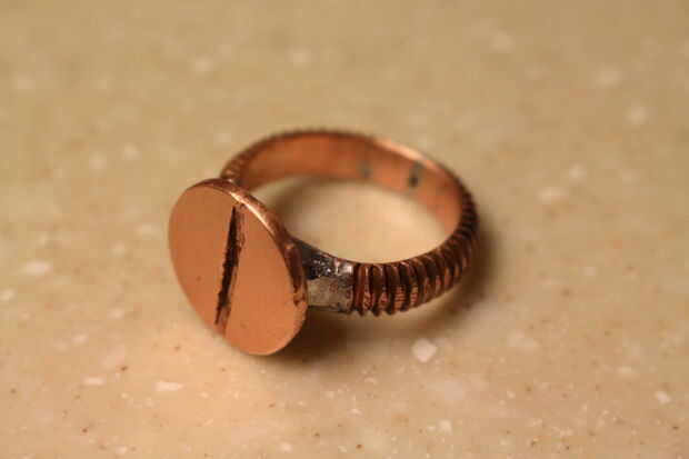 Ahora sólo rocíe el anillo con la laca clara para que no gire el dedo verde. :)