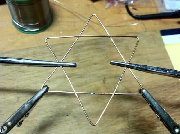 Entonces construí un segundo triángulo idéntico. Los dos triángulos se sueldan juntos para formar una estrella seis caras.