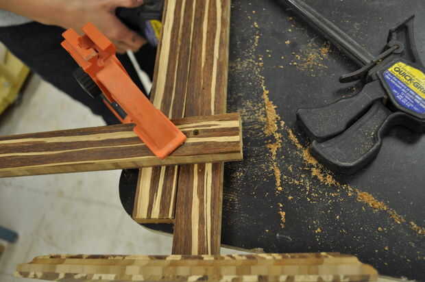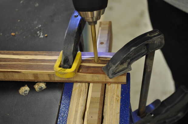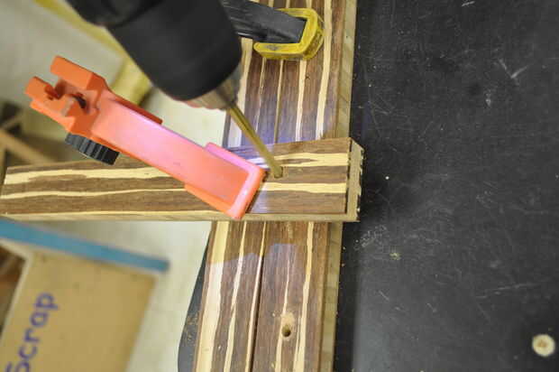 utilicé la plantilla que hice para perforar todos los agujeros para los tacos.  Estaba segura a todas mi piezas durante este paso.