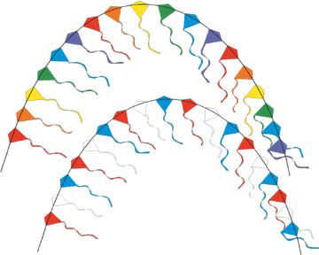 Colas: Cerca de 2 pies por cometa, cinta de luz, tiras de plástico, nada de lo que es ligero, flexible y complementa tus cometas sería lo ideal.