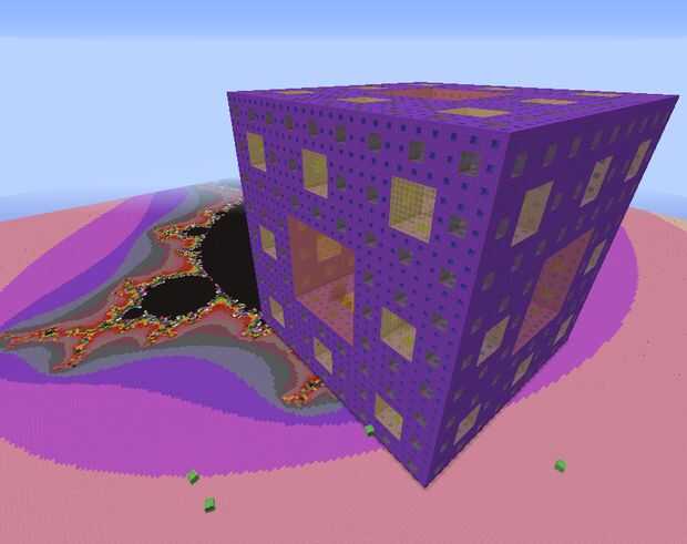 La esponja de Menger, por otra parte, se hace dibujando un cubo. Luego se divide el cubo en 27 cubos (3 x 3 x 3), y se quita el subcubo en el centro de cada cara, así como en el centro del cubo entero. Esto se repite. Puede generar con: