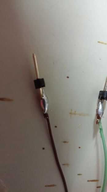 Soldadura hombre patillas de Arduino para cada cable en el otro extremo del cable así que nos podemos conectar en el Arduino. Envuélvase en cinta aislante para que no toque nada que no. Seguridad primero!
