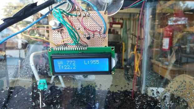 El sensor de temperatura fue sólo un TMP36 estándar, que cambia en función de la temperatura de la resistencia. Luego leer el voltaje a través de la TMP36 con un analógica en el pin y convertir esto a una temperatura. El fotoresistor funciona casi de la misma manera, excepto con luz. Conectado una resistencia de 10K en serie con la fotorresistencia y otro análogo en el pin nuevo para asegurarse de que limite la corriente a través de los pines de Arduino.