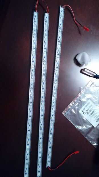 Luces de crecimiento son la mayor energía intensiva parte del proyecto, por lo que era importante utilizar como poca energía como sea posible, trate de forma tan natural y utilizar LEDs de mayor potencia. He encontrado las tiras de LEDs de 12V (cada tira de 10W) en Amazon. Decidí utilizar dos tiras como un equilibrio entre consumo de energía y hacer que mis plantas reciban suficiente luz.