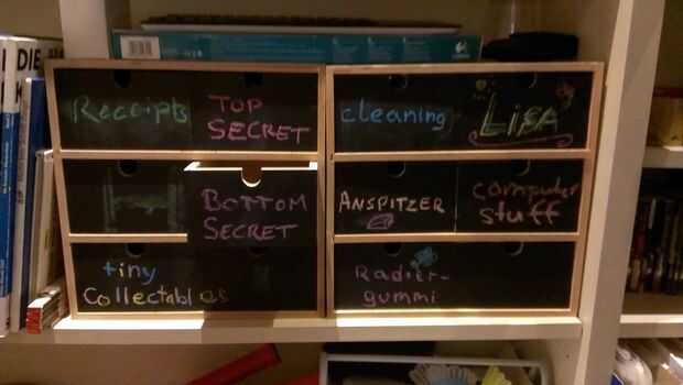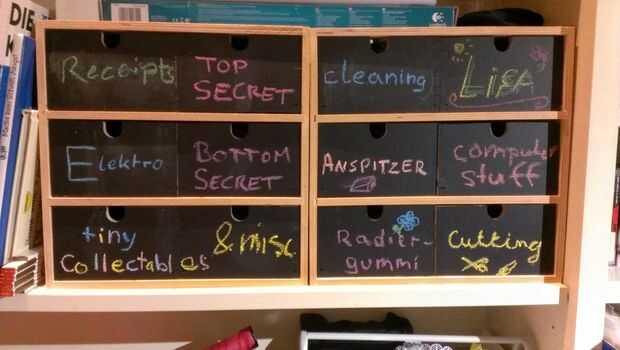 Espere para la segunda capa de pintura se seque por completo (que puede tardar unas horas), entonces eres bueno para ir a los cajones de la etiqueta. Utilice algunas tizas de colores para darle un aspecto más variado.