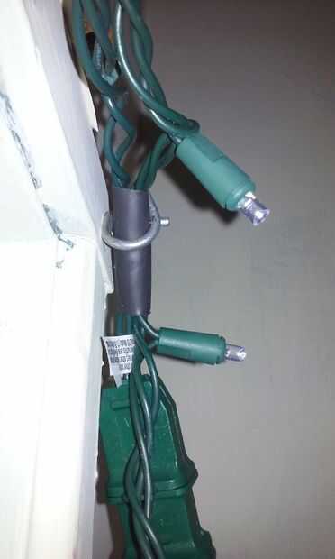 Después de envolver las luces alrededor del interior de la jamba, he añadido una protección extra de las argollas cubriendo el alambre en pedazos cortos de tubería encogible tundir (cortadas longitudinalmente y deslizado sobre los cables).