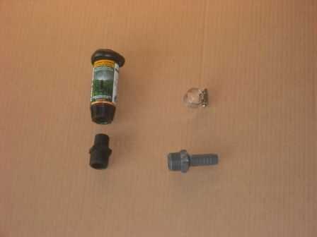 Las piezas de esta compilación fueron encontradas en dos pasillos de mi ferretería local de caja grande. Cantidad Descripción 1 x 3/4 "x 10' PVC pipa, Sch 40 t de PVC de 6 x 3/4" PVC tapa 5 x 3/4", deslizamiento x deslizamiento x tee de PVC antideslizante 3 x 3/4", x fpt deslizamiento x deslizamiento 1 x 3/4" 90 ° codo 5 x 3/4" PVC adaptador de PVC, hilo de x fpt 3 x 1/2" de deslizamiento x 3/4" mpt (al lado de la regadera; esto convierte la rosca de 3/4" PVC al 1 / 2" aspersor cabeza hilos de rosca, que no es lo mismo que 1/2" PVC roscas) 3 x 2,5" cabezal de aspersor emergente, inserción de 180 ° patrón 5 x 1/2" x 3/4" mpt (junto al calentador de agua y elementos de la bomba del colector de aceite) x 5 #8 manguera abrazadera 1 x 5/8" manguera de jardín (barato, se cortarán para arriba) teflón imprimador para cintas de PVC del hilo de rosca y costo de los materiales era de $25,00 Total del cemento.