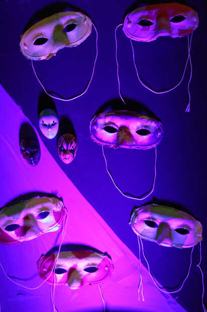 He añadido algunas cosas más como globos de mylar, que había impreso con una plantilla de la plataforma. Y el arte dulce que suena bien, pero es sobre todo un lío. Y púrpura uplights, que agrega más color y ambiente.