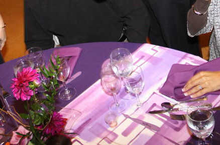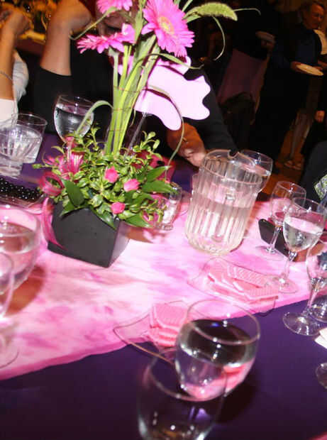 Tuvimos más de 130 invitados, lo que significó un gran salón y más de una docena de mesas para decorar. Tuve que ir en negrilla y tiene un montón de decoraciones o habría sido perdidos en el espacio grande. Mi concepto básico fue hacer cada tabla una isla de color. Cada mesa tenía un nombre de pintura de artistas como óxido de cromo verde o carmesí de alizarina. Excepto el color base del paño de tabla, todas las sábanas, flores y acentos iría con esa mesa sólo. Fue como el diseño de muchos partidos pequeños, pero el resultado final fue impresionante.
