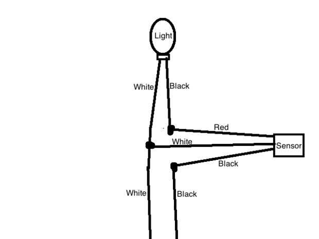 he comprado un sensor de la fotocélula en eBay después de aprender Lowes, Home Depot, y Walmart eran fuera de stock en ellos o no llevarlos. No hay problema, pensé, 3 cables y si vienen con instrucciones. Llegó, pero no instrucciones excepto en el pequeño plástico parte (ver segunda foto). NO soy electricista, pero generalmente puede manejar proyectos fácil. Si tiene 2 cables, debería ser fácil, pero con 3... es un problema. Fui en línea a instructables, Youtube y otros sitios. Aunque no pude encontrar nada que lo que necesitaba, reunir lo suficiente para intentarlo. Aquí está mi esquema (tercera foto) y las instrucciones: