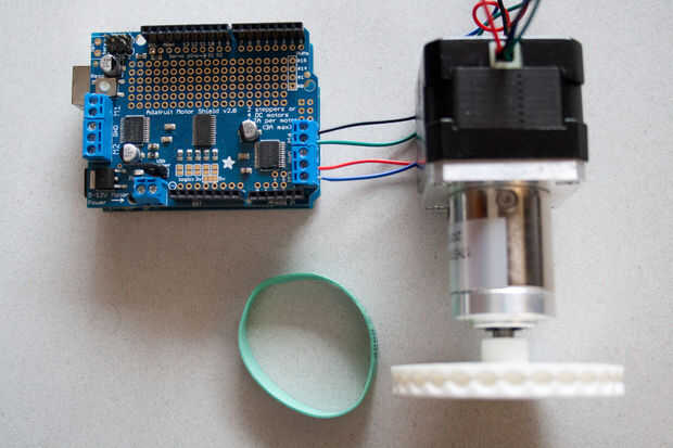 Primero montar el escudo del Motor Arduino siguiendo los pasos de este tutorial: http://learn.adafruit.com/adafruit-motor-shield-v2... No te olvides de descargar el código de motor shield Adafruit