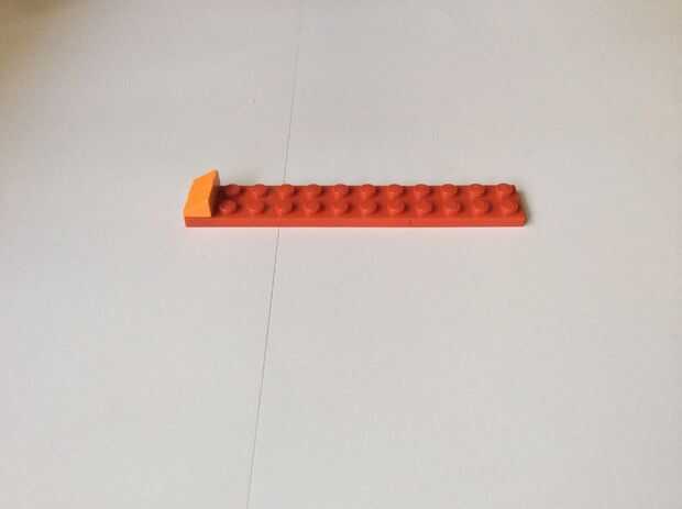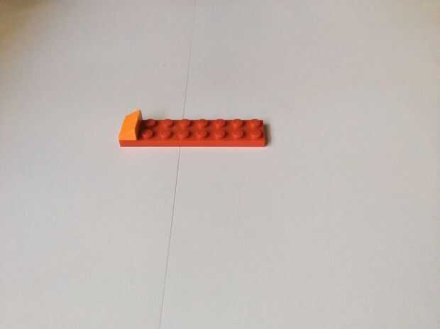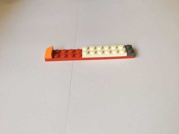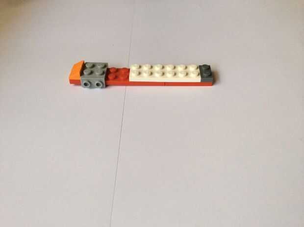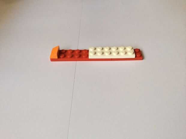 Empezar de con una placa de 2 x 8 adición de 2 pistas de 1 x 1 en la parte delantera. Poner una placa de 2 x 4 en el final de la 2x8.Combine con un plate.add de 2 x 6 1 x 2 de la placa en el extremo. Ahora agregue una placa de 1 x 2 con postes de madera en la parte detrás de las pistas de 1 x 1