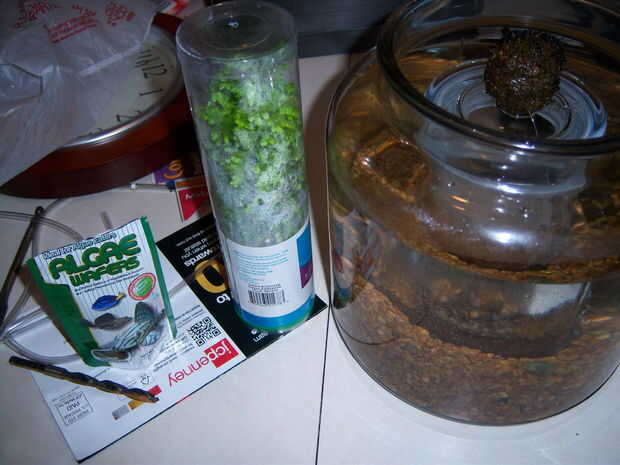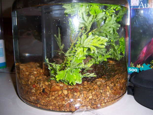 Las plantas ayudará a airear el agua. y la bola de musgo es sobre todo para la diversión.