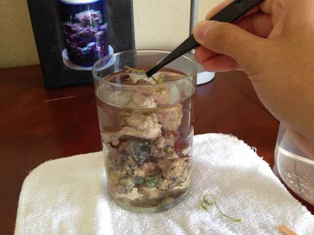 -Retirar los corales uno por uno desde el contenedor de almacenamiento.