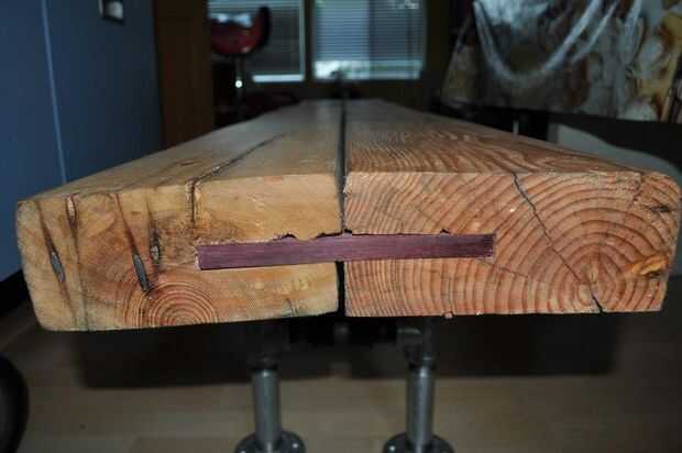 Después de cortar las vigas a medida, usted querrá montarlos juntos. Opté por usar una tira de corazón púrpura para la Asamblea.