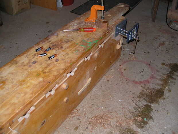 Sin embargo, la prensa se encuentra bien. ¿Ver las clavijas empujando hacia el lado? Apoyan tablas de borde a borde cepillado y biselado. Tenía dos filas 4-6 pulgadas y hasta planchas de 11 pulgadas. Añadir a un espaciador para que las tablas ponen al ras con la parte posterior de la mordaza, o barbilla la mordaza en color.