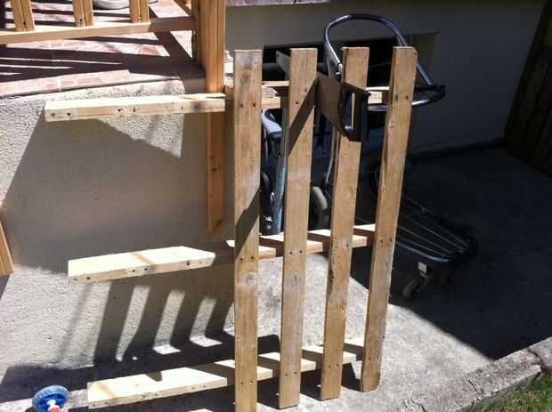 el gallinero finalmente está siendo montado en un lugar de clima muy caliente. También armé un conjunto de viejas ruedas de cortadora de pasto en un marco de madera de palet pequeño para ayudar a negociar los árboles y arbustos en el jardín. Este dis