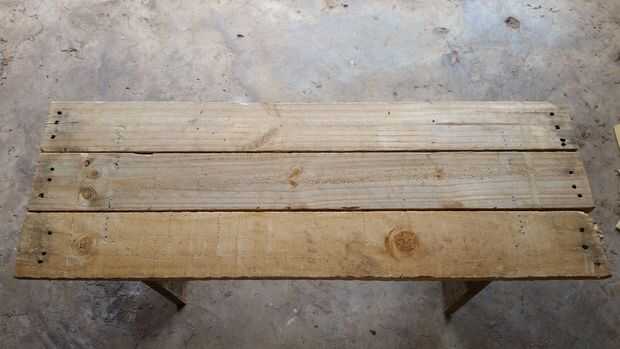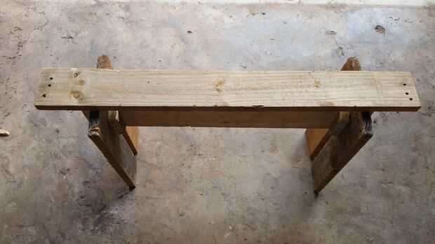 Martillo de la longitud de la madera para las patas. Asegúrese de que utilizar suficiente clavos para hacer un asiento robusto.