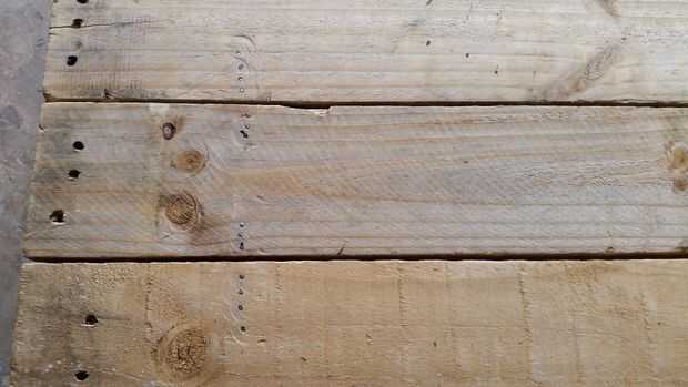 Repita este paso con dos otros longitud de la madera, dejando 1 cm entre las longitudes de la madera. Una vez más, asegúrese de que utilizar suficientes clavos.