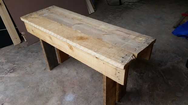 Y viola! Ahora tienes un banco de madera de palet robusto! Puede lijar ligeramente abajo del asiento para evitar cualquier potencial astillas o incluso dar el Banco de un trabajo de pintura bonita!