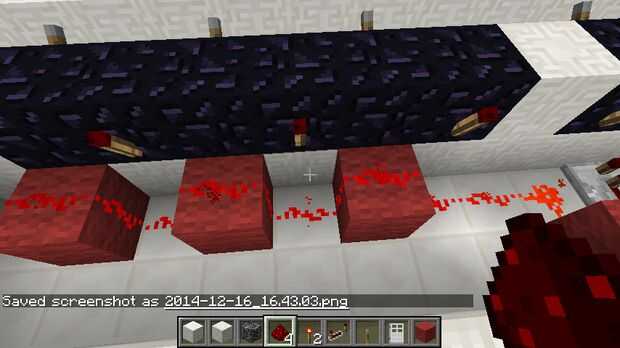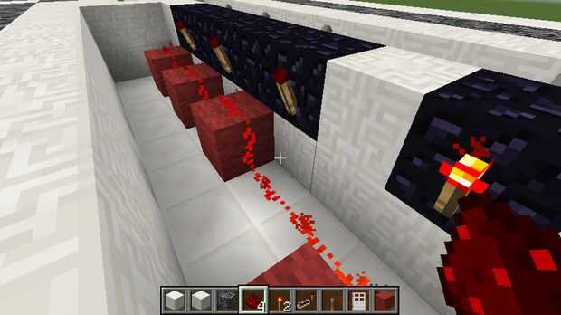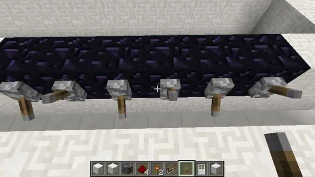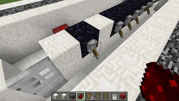 Ahora para el cableado. Para entrar en una combinación, cambiar todas las palancas que forman parte de su combinación (palanca de 2, 4 de palanca, palanca de 6), también hacer esto antes de agregar el redstone, o no funcionará correctamente. Entonces para hacer el interruptor principal (también conocido como el botón Enter) mire la segunda imagen (también nota que las antorchas de redstone, antorchas regulares no funcionan) y copiarlo exactamente. A continuación, encontrar las palancas que se girarán como parte de su combinación, poniendo antorchas de redstone a lo largo de la obsidiana, los que no son su combinación. Una vez hayas hecho esto, romper todas las antorchas que se encienden para arriba y en su lugar, coloque un bloque de lana debajo de ellos. Para las antorchas que no se encienden para arriba, poner redstone directamente debajo de ellos sin un bloque de lana (la cuarta foto). Por último, para conectar el circuito principal (botón Enter) y el circuito de combinación, coloque el redstone en el espacio entre las dos partes de obsidiana (cuadro 4). Una vez hecho eso, eso es todo! Ahora, cuando es introducida una combinación incorrecta, la puerta no se abre, a menos que una es introducida. Además, yo no he hecho aquí, pero sugiero poner signos en las palancas de combinación para que sea más fácil recordar su combinación.