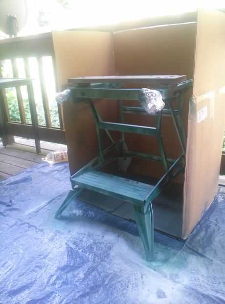 Por lo tanto, de es dos días más tarde y romper una caja nueva para empezar a pintar. Esta parte realmente me freaked hacia fuera en el principio; las instrucciones en la lata estado: "Spray en un constante movimiento de barrido, sobre el chapaleteo capas como vas..." ¿sí... te parece esta cosa? Con todos los rincones y recovecos rociar algo con cualquier tipo de constantemente fue maldita cerca de imposible! Puedes ver donde estaba después de una capa en la primera foto de este paso. Suffusive decir, sudaba balas!