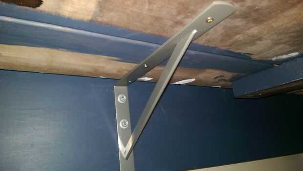 El centro del Banco y coloque la ortesis. El apoyo recogido de Home Depot dijo que era un refuerzo de 600lb. Debe ser suficiente para nosotros.